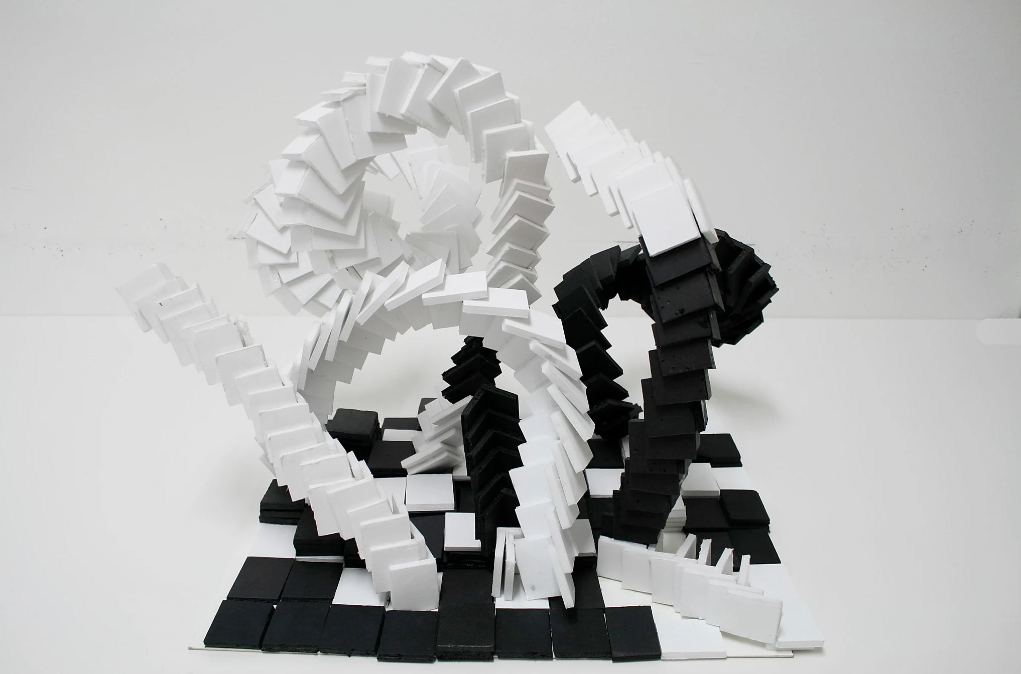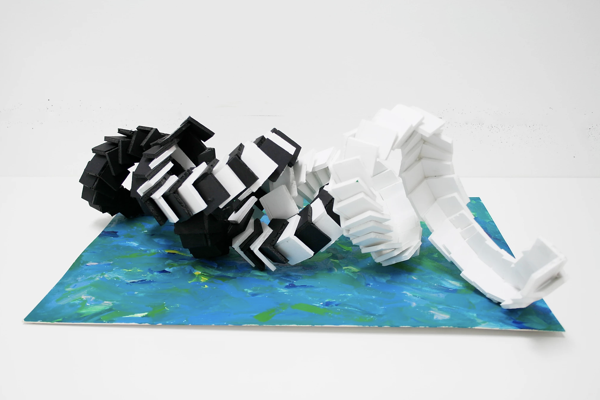 To emphasize amusement rides, I designed works that explore movement, balance, and unity, inspired by rollercoasters and my personal experiences at amusement parks. I also looked to artists like Christo and Romuald Hazoume, who engage with space and negative space to create impactful forms—an approach I applied to achieve width, height, and depth in my work.