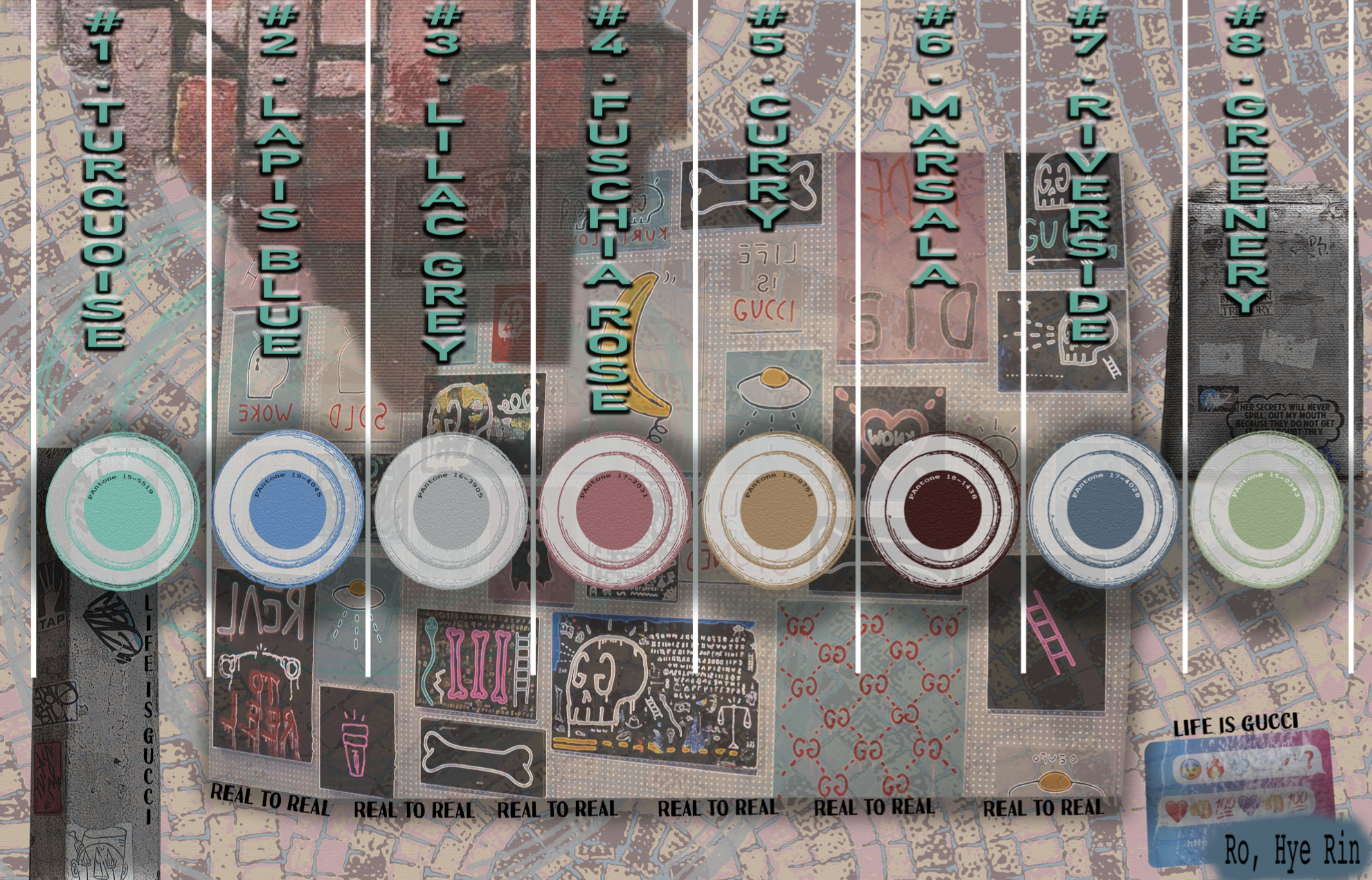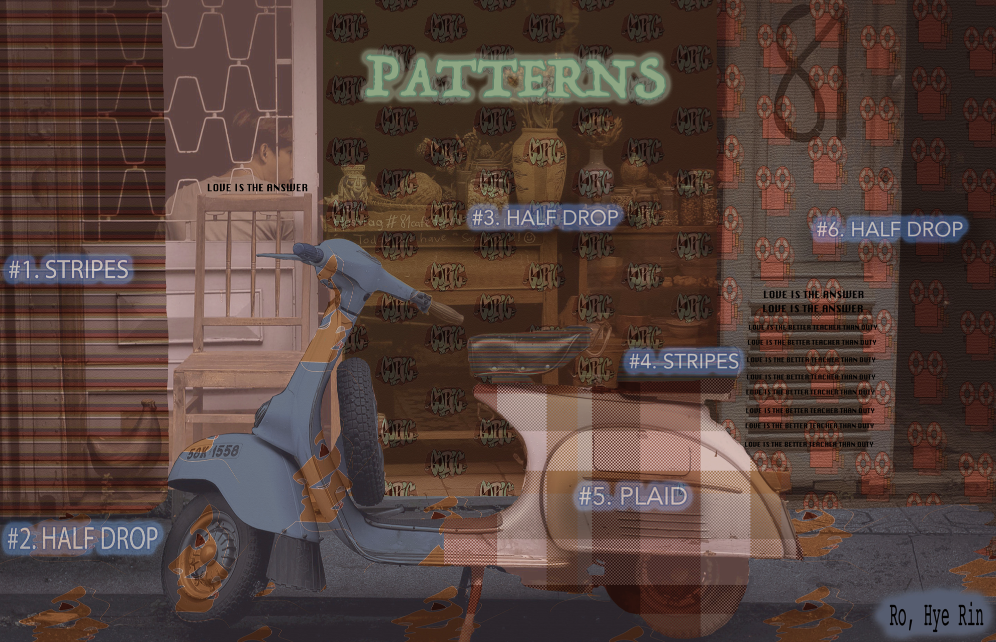 The theme of this project is to explore the world through a contrasting yet optimistic lens. From the outside, we see a dull, uniform landscape of buildings but when we look closer, we discover vibrant graffiti, stickers, magazines and dynamic patterns beneath the surface. Most of the imagery used in this work was photographed by me.