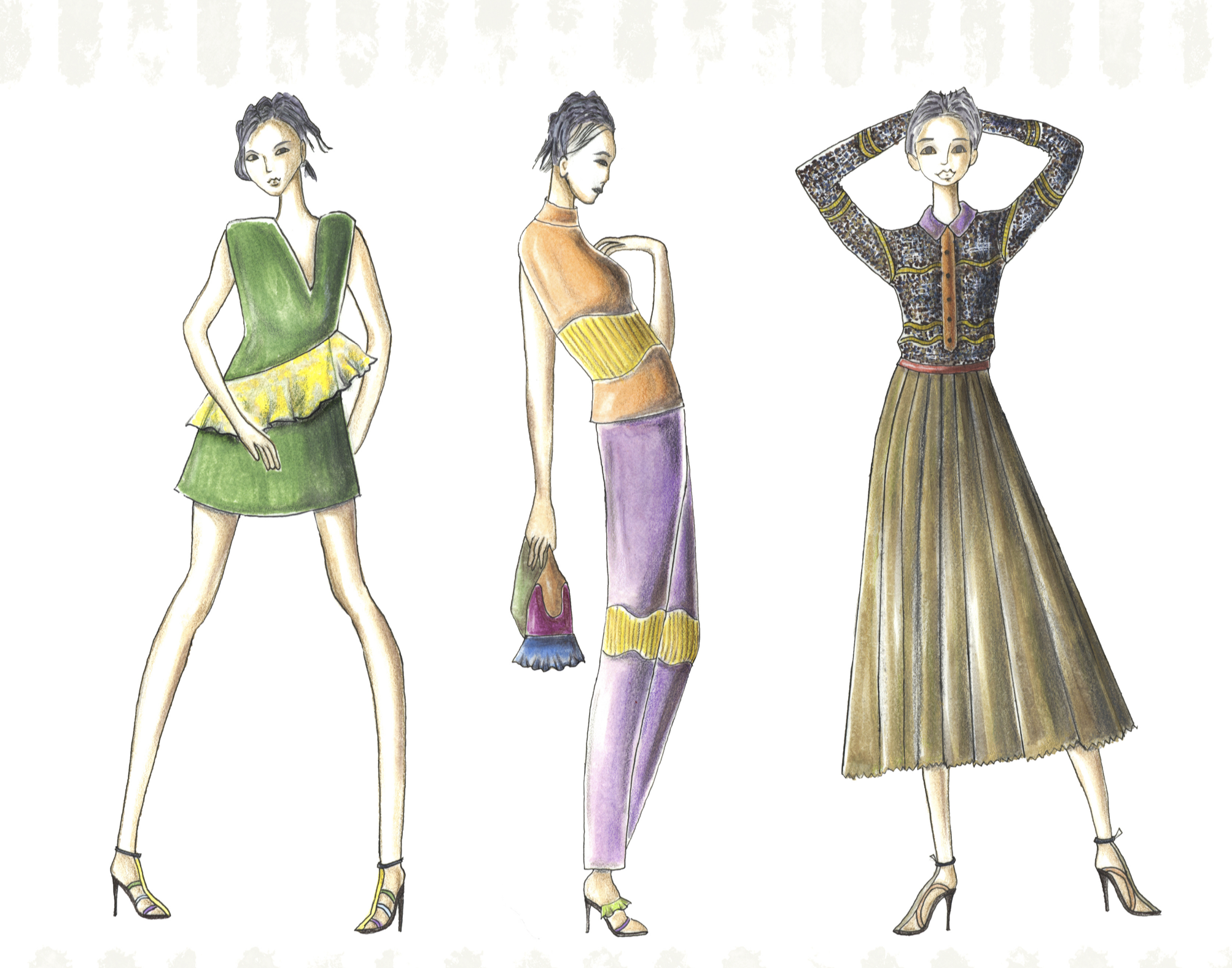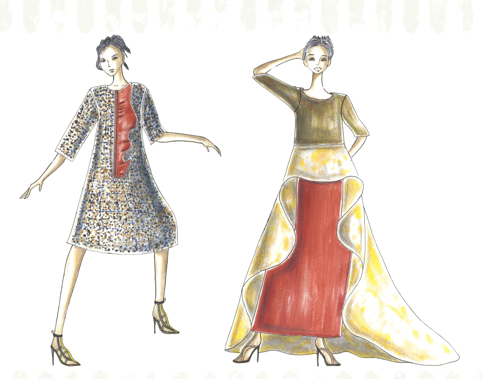 fashion illustration: Organically shaped drapes s/s ready-to-wear