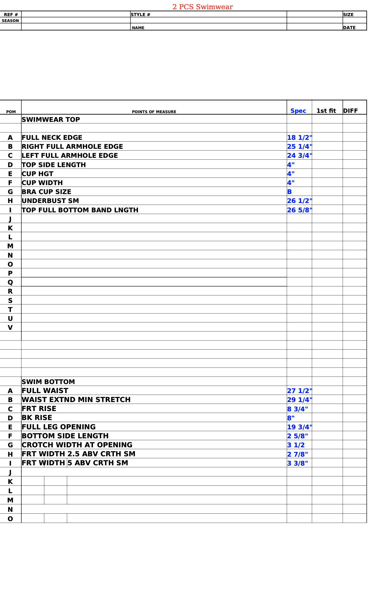 MEASUREMENTS: KNIT TOP AND SWIMWEAR